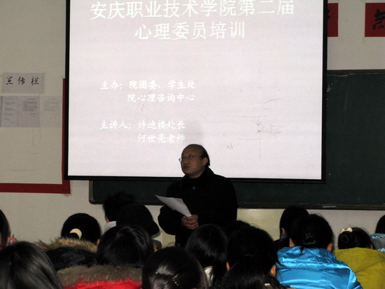 培训会上,院学生处副处长许迪楼简明扼要地介绍了心理委员的作用、职责和工作要求,院心理健康教育与心理咨询中心主任何世亮较为系统地传授了工作方法以及相关心理常识等。