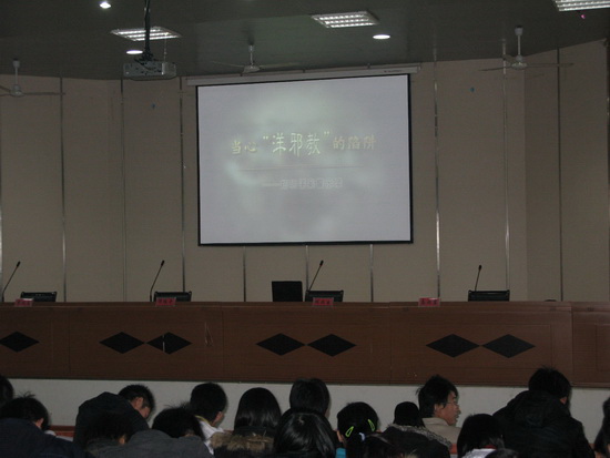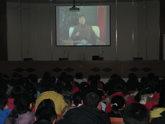 122下午1:50,在图文信息中心一楼大报告厅,院团委组织了近500名同学观看了反邪教纪录片――《当心“洋邪教”的陷阱――郑明锡案警示录》,参加观看的学生主要是院学生会干部、各系学生会干部及各班级的班长团支部书记。