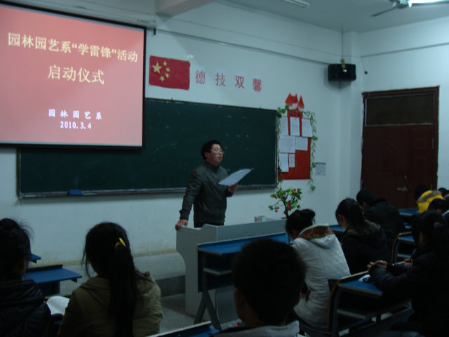 3月4日晚,园林园艺系在1号教学楼307教室举行了“学雷锋活动月”启动仪式,会议由该系团总支书记姜晓斌主持,系党总支副书记桂骏和各班学生代表参加了会议。