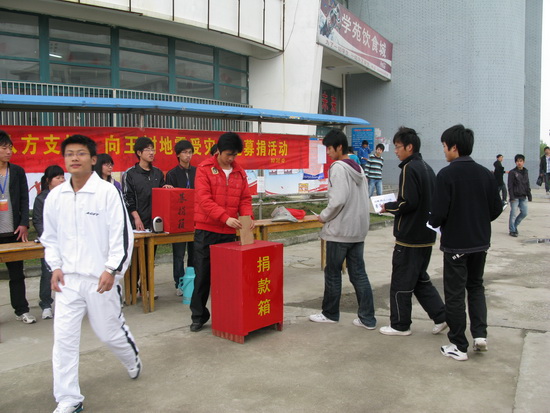 4月22日中午11:30,我院学生向青海玉树地震受灾同胞捐款活动在食堂广场拉开了序幕。此次活动在院团委精心组织、各系部团总支大力动员、全体学生积极参与下取得圆满成功,截至到4月22日下午1:30分,共筹得善款共计人民币¥51479.10。