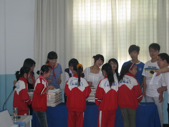 我院师生的到来受到了老峰第三小学老师和同学们的热烈欢迎,孩子们为我们准备了一场精彩的文艺汇演。院团委副书记余锋与老峰镇第三小学潘校长共同为青年志愿者服务基地揭牌。随后进行了简短的捐赠仪式,由我院青年志愿者向老峰第三小学捐赠图书和学习用品,整个过程充满温情,既感动了孩子们,也激发了青年志愿者们将志愿者服务进行到底的决心。