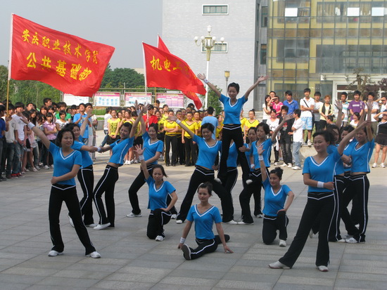 6月3日下午,我院女子活力健美操比赛在行政楼前广场隆重举行。院党委委员、副院长毕明生到场观看比赛并为获得一等奖的代表队颁奖,院团委书记高润霞和各系部团总支书记参加了此次比赛的开幕式并观看了比赛。许咏梅老师、王晓林老师、高萍萍老师、梅文斌老师、方玲老师、查艳老师、宋桂萍老师应邀担任此次健美操比赛的评委。比赛由院团委副书记余锋主持。