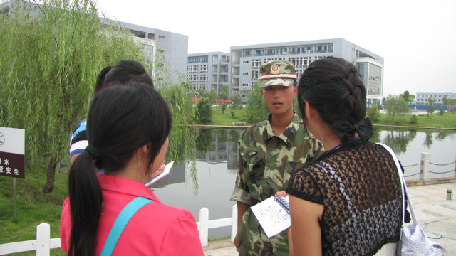 教官:跟去年差不多,主要是齐步正步走,体转法,跨列,立正,稍息,分列式等内容。