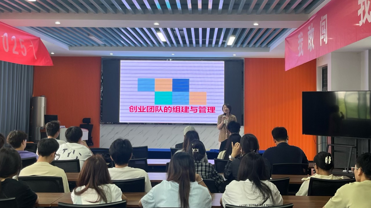 随着我校创新创业教育的不断推进,越来越多的学生投身创业实践,但在实际操作中,如何科学组建和高效管理创业团队成为横亘在他们面前的难题。活动伊始,张铮凭借丰富的教学与实践经验,直击创业痛点,围绕“创业团队的组建与管理” 这一主题展开深入讲解。她从团队管理的核心要点切入,结合实际案例,详细阐述了创业团队组建过程中成员选拔的标准、团队角色分工的重要性,以及如何建立有效的沟通机制和激励制度。她强调,一个优秀的创业团队,不仅需要成员具备互补的专业技能,更要拥有共同的目标与价值观,如此才能提升团队执行力与协作效率。