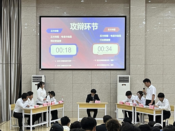 6月11日晚,建筑工程学院在1号教学楼316教室举办学生辩论赛决赛,双方围绕辩题“电信诈骗是预防更重要还是打击更重要?”开展讨论。本次辩论赛以班级为单位组建队伍报名参赛,经过前期预赛、复赛的激烈角逐,最终两支队伍进入决赛。
